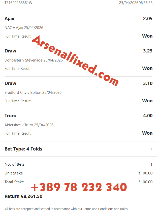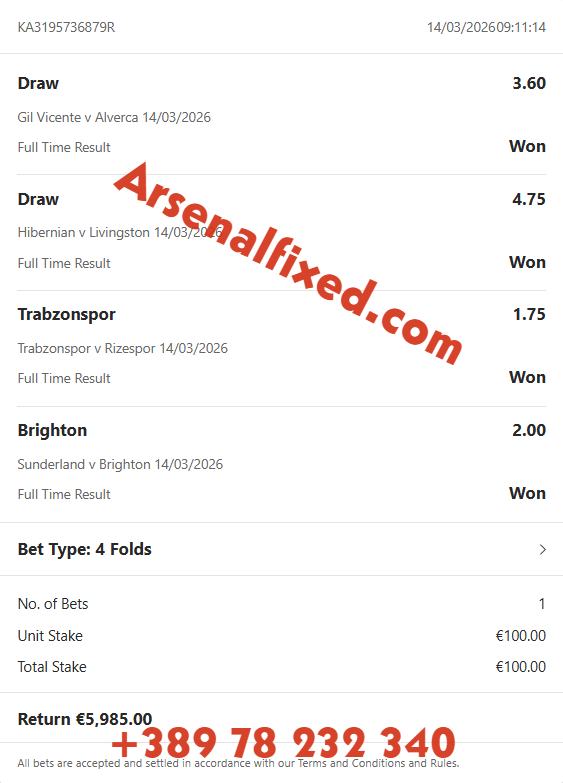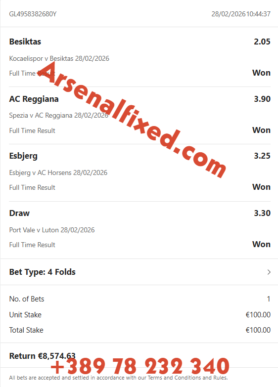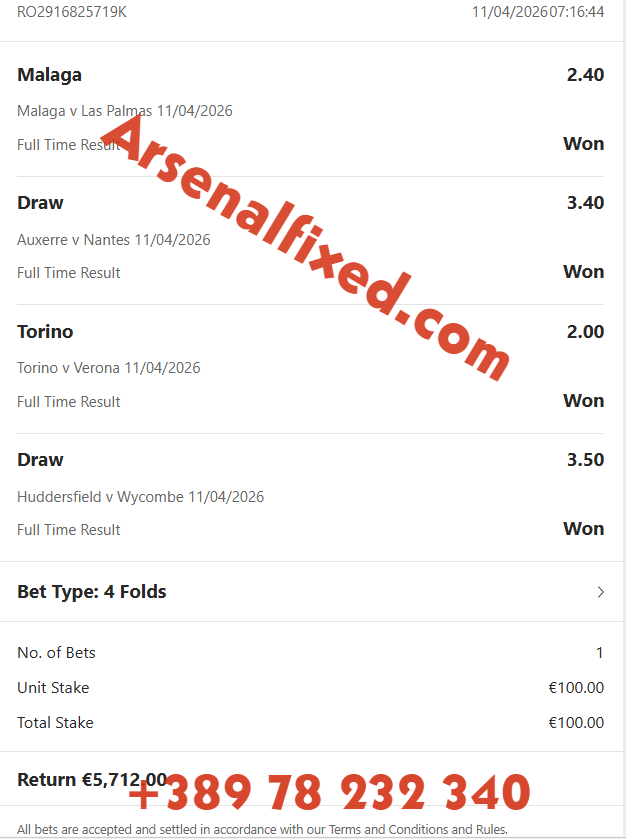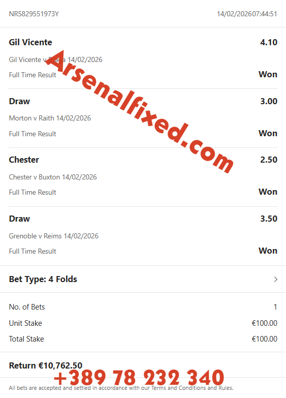 Arsenalfixed organisation would like to say thank you for visiting our website. Here you will find amazing offers for even more amazing prices but the most important thing you will find here and nowhere else is the guarantee for success and big win. Non like any other site we take care for you and your money, and we guarantee that cooperation with us will multiply your budget thanks to our professional team who only gives 100% sure fixed matches. Our team guaranteed sure profit and long cooperation.