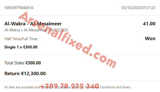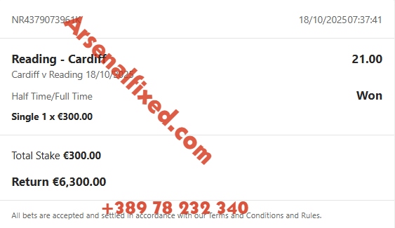 HT FT Fixed Match is special offer only for satruday. Weekend sure fixed odds are here and you can book your place. Contact our team and you can pay good money for safe big odds 1×2. Get information from us and try to be fast in your replies because big costumers are here for this fixed match.